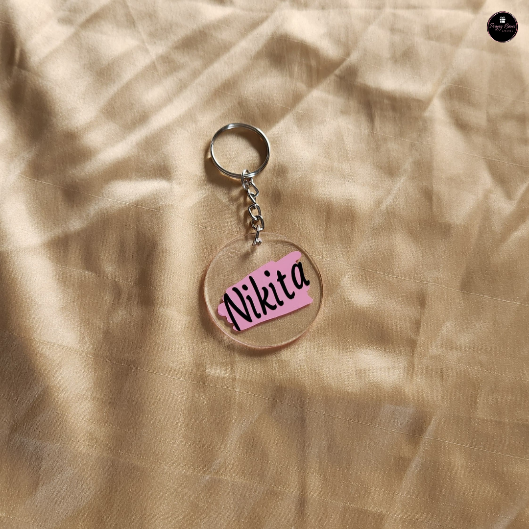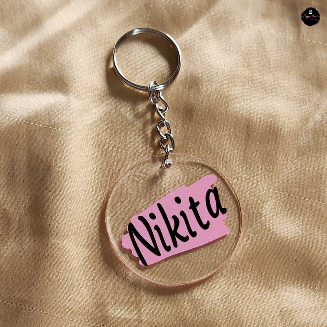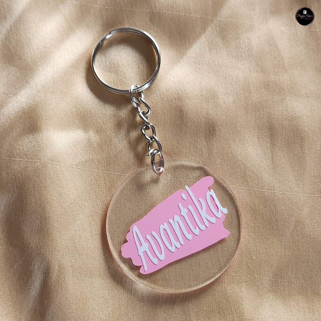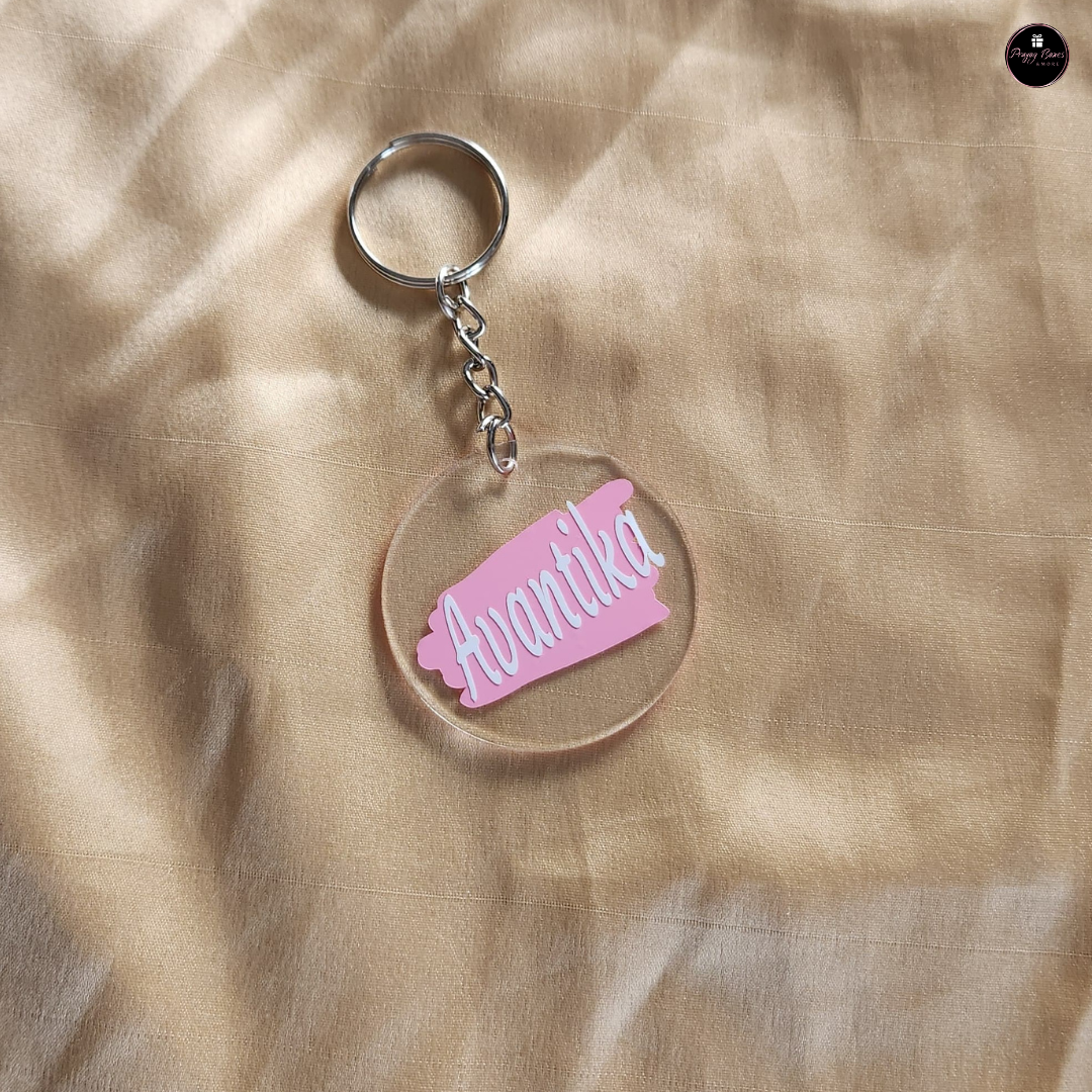 Pink Base with Black/White Text - Custom Acrylic Keychain - Free Shipping