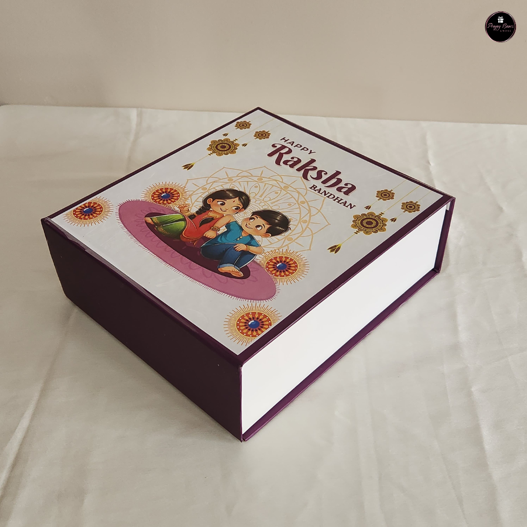 Raksha Bandhan Special Magnetic Hamper Box | 8.5x7.5x3" with Decorative Fillers