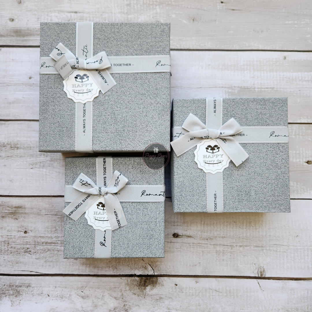Square Grey Top Black Box with White Ribbon Gift Box | Gift Hamper